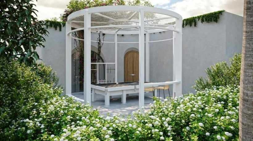 Không gian xung quanh ngôi nhà vô cùng thoáng đãng, tràn ngập cây xanh và hoa tươi.