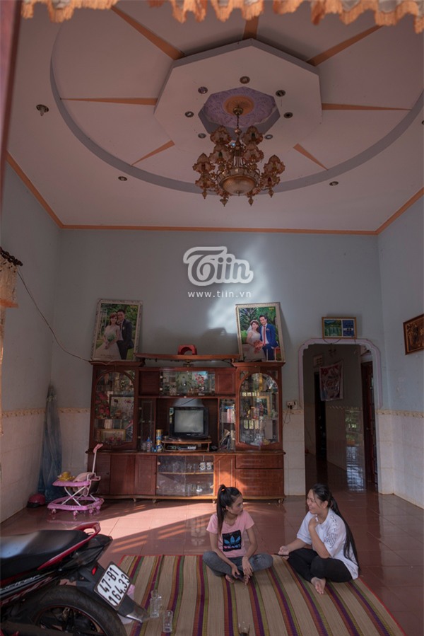 Căn phòng được bài trí đơn giản với tủ gỗ cao để tivi và vài món đồ trang trí, ngoài ra hình cưới của em gái H’Hen cũng là điểm nhấn trong phòng.