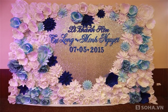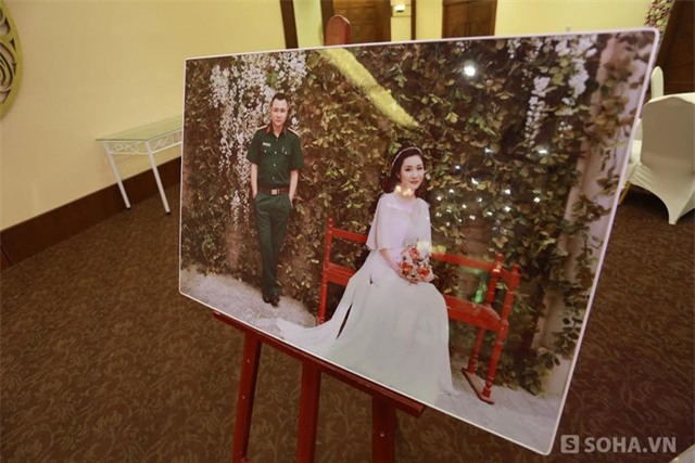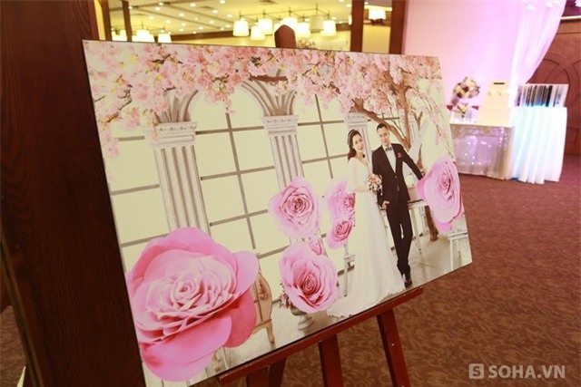 Ngoài sảnh chờ, rất nhiều hình ảnh của cô dâu - chú rể được trang hoàng.