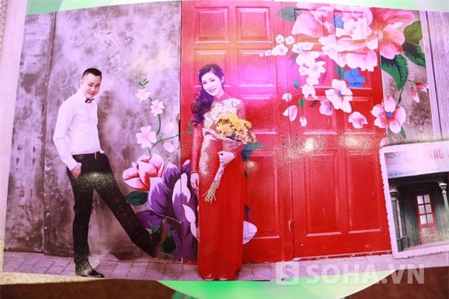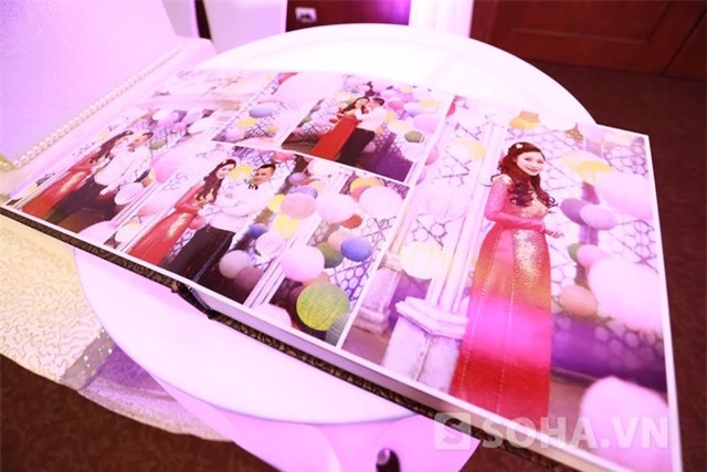 Bàn tiếp khách được trang trí bằng những hình ảnh thân mật, tình cảm của Tự Long và Minh Nguyệt.