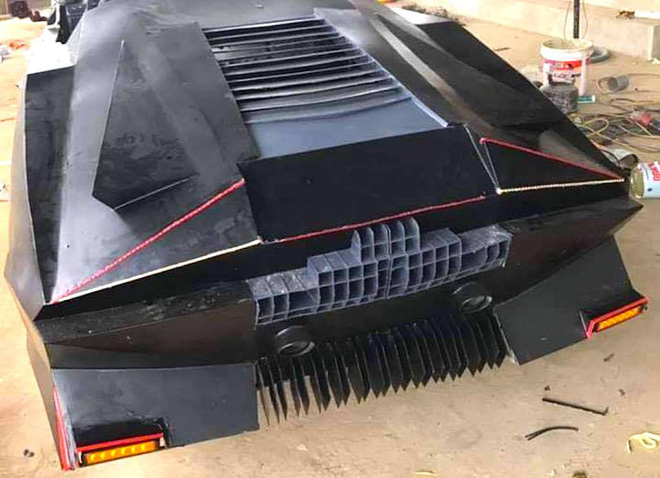 Sau khi gò xong lớp áo, Trung đã sơn màu đen để tạo vẻ hầm hố và che khuyết điểm của chiếc xe cũ.