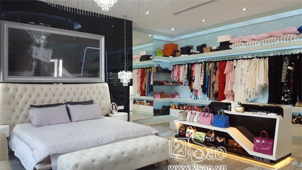 Phòng ngủ được cô nàng Ngọc Trinh thiết kế mở, tất cả quần áo, giày dép, túi xách, đồng hồ đều được "nữ hoàng nội y" trưng bày tại căn phòng này. Chia sẻ lí do về việc phòng ngủ và phòng để đồ chung, Ngọc Trinh nói rằng cô thích cảm giác mỗi sáng thức dậy, mở mắt ra nhìn xung quanh là những trang phục đẹp, những chiếc túi, hay những đôi giày mà mình yêu thích.