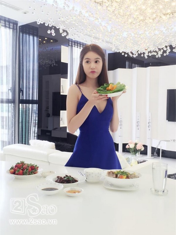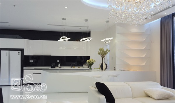 Và hôm qua (10/11), trong một buổi chụp hình cho tạp chí tại ngôi nhà, 2Sao đã có cơ hội tận mắt ngắm nhìn cũng như tranh thủ "chộp" lại những hình ảnh trong căn nhà đẹp và hoành tráng của Ngọc Trinh. Tông màu chủ yếu được Ngọc Trinh lựa chọn trong nhà mình là màu trắng, không gian rộng lớn thoải mái và đầy đủ tiện nghi. Bước chân vào nhà, mọi người có thể choáng ngợp với sự xa hoa lộng lẫy.