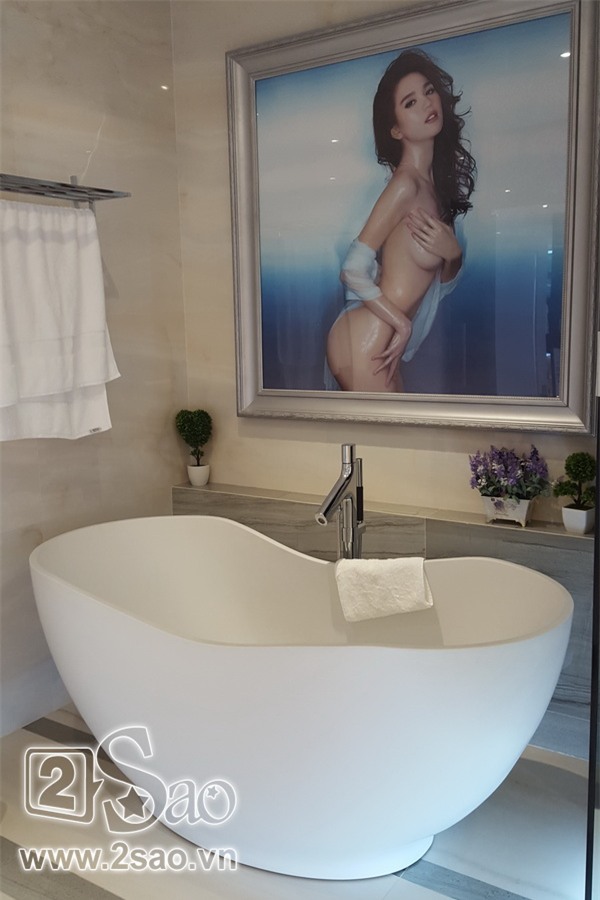 Không gian nhà tắm cũng khá rộng rãi, Ngọc Trinh muốn sau một ngày làm việc vất