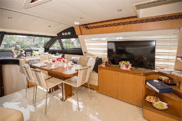 Du thuyền riêng của Lý Nhã Kỳ được thiết kế đầy đủ các tiện nghi bao gồm phòng giải trí, phòng ăn, phòng khách, khu quầy bar, khu tiệc ngoài trời, 3 phòng ngủ rộng rãi và một phòng sinh hoạt dành cho thuyền viên. Để sở hữu chiếc "phi cơ trên biển", giới thạo tin đồn đoán nữ chủ nhân đã phải rút hầu bao không dưới vài triệu USD. Hiện, mỹ nhân họ Lý là ngôi sao duy nhất tại Việt Nam sở hữu thương hiệu du thuyền này.