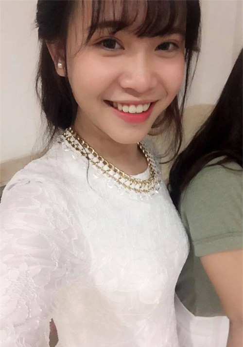 giọng ca vàng Mực Tím, cô cũng để tóc dài mái ngố, cũng mặc áo dài trắng