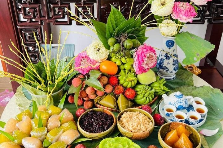 Mâm cúng Tết Đoan ngọ ở miền Trung. (Ảnh: Đào Lan Phương)