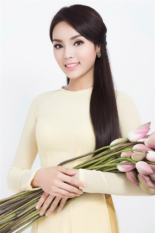Trong loạt ảnh áo dài chụp sau khi đăng quang, cô chọn kiểu tóc dài, vấn nửa đầu nền nã nhưng vẫn bị đánh giá là già trước tuổi
