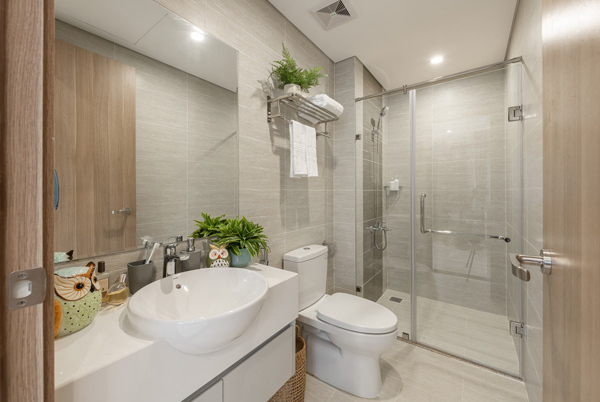 | Với khu vực nhà tắm - vệ sinh, nhà thiết kế khuyên khách hàng nên chọn thiết bị sáng màu để tạo cảm giác sạch sẽ, mát mẻ (ảnh căn hộ mẫu, chỉ mang tính minh họa) |