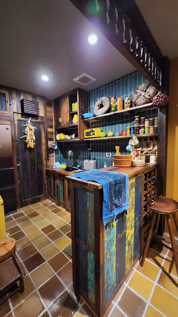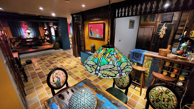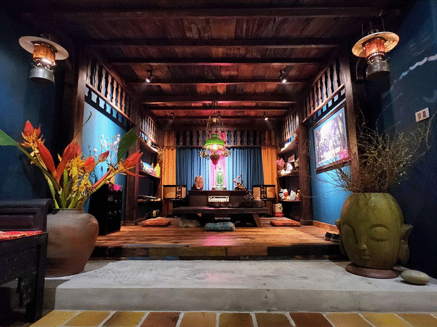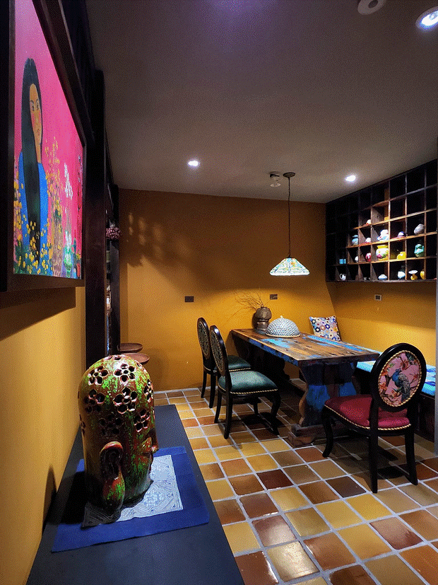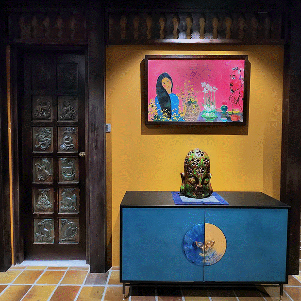Họa sĩ thiết kế Nguyễn Long mới đây đã hoàn thành một công trình đặc biệt như vậy. Anh gọi đó là "một bữa tiệc của màu sắc". Không gian nhà cổ được mang tới đặt vào 1 căn chung cư 140m2 một cách độc đáo, bất ngờ.