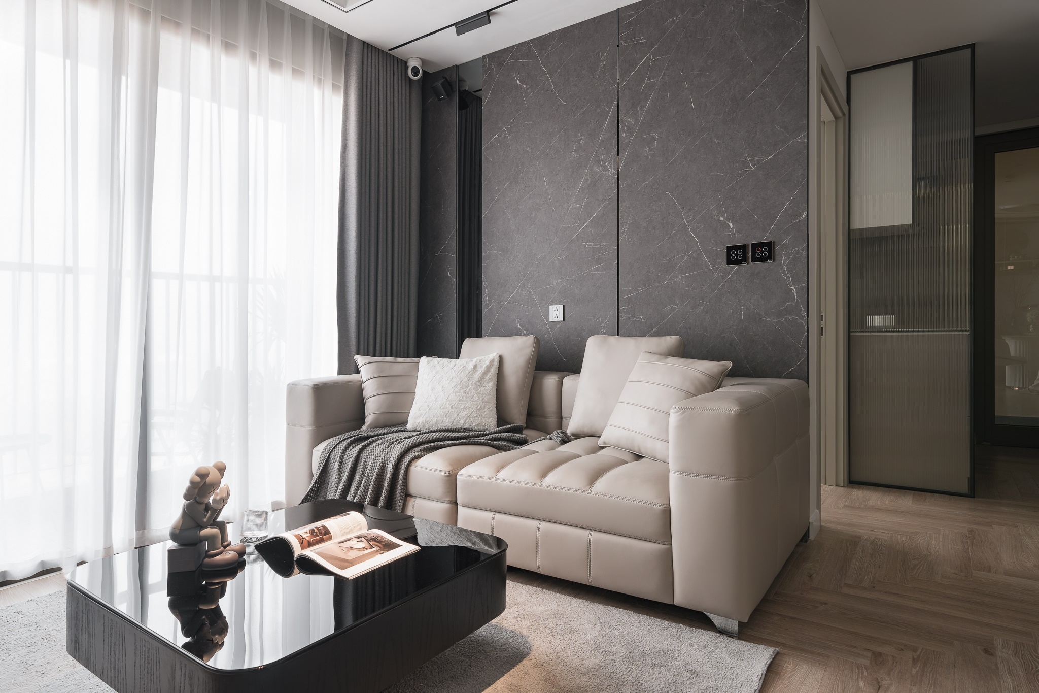 Không gian nội thất định hướng theo phong cách hiện đại tối giản, gam màu chủ đạo là màu trắng và xám, đây là màu sắc yêu thích và phù hợp với các thành viên trong nhà. Tổng thể, căn hộ không quá cầu kỳ nhưng đầy đủ các yếu tố cần thiết để tạo ra không gian sống thoải mái cho cả gia đình.