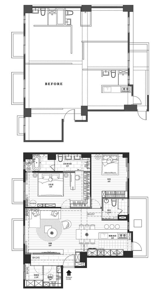 Các cửa lưới bằng kính hút ánh sáng mặt trời từng lớp và sàn phẳng được sử dụng để tạo điều kiện thuận lợi cho việc kéo hành lý ra vào. Một bên vách quần áo là khung sắt dùng để trưng bày, bên kia tủ mây được đẩy ra để đặt túi xách, giày dép, áo khoác thường dùng.
