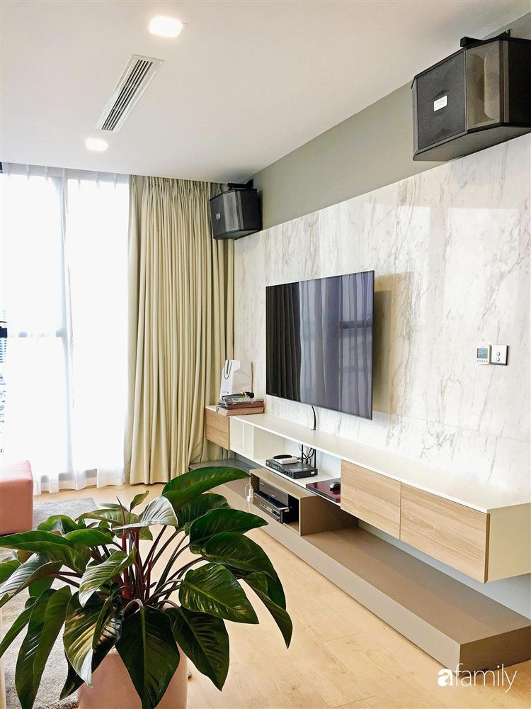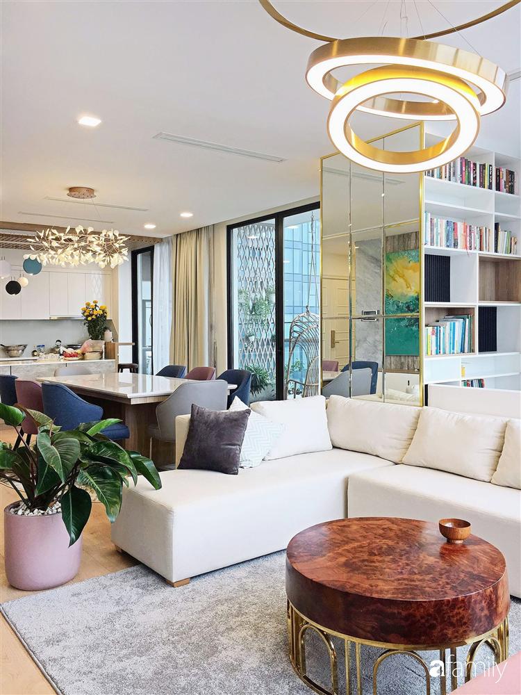 Sau một ngày làm việc vất vả, khi bước vào nhà, ai cũng muốn ngồi lại ở đây để ngắm nhìn vẻ đẹp bình yên của thành phố đang chuyển dần về đêm. Ánh đèn của nhà cửa, xe cộ tạo nên bức tranh vô cùng lung linh và đẹp mắt, điểm tô cho không gian phòng khách đẹp sang chảnh như đang tận hưởng kỳ nghỉ dưỡng trong khách sạn 5 sao.