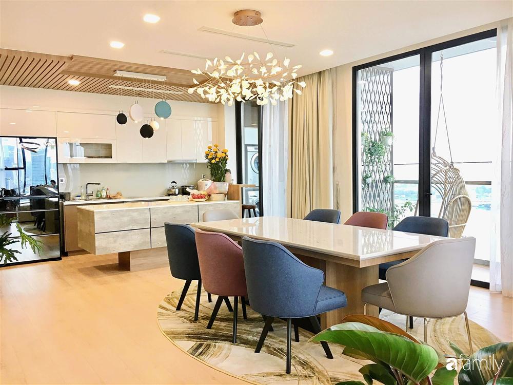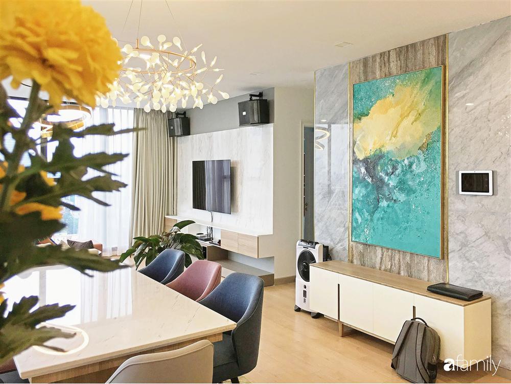 Khu vực phòng khách và nơi ăn uống được decor linh hoạt với những sắc màu trẻ trung nhưng vẫn đủ thanh lịch, nền nã.