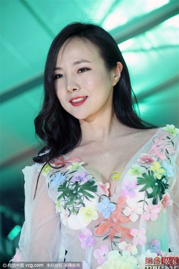Chiếc váy hoa diêm dúa của Can Lộ Lộ được thiết kế khoét sâu, và nó dường như quá chật chội đến mức làm cho vòng một như bị chèn ép đến ngạt thở.
