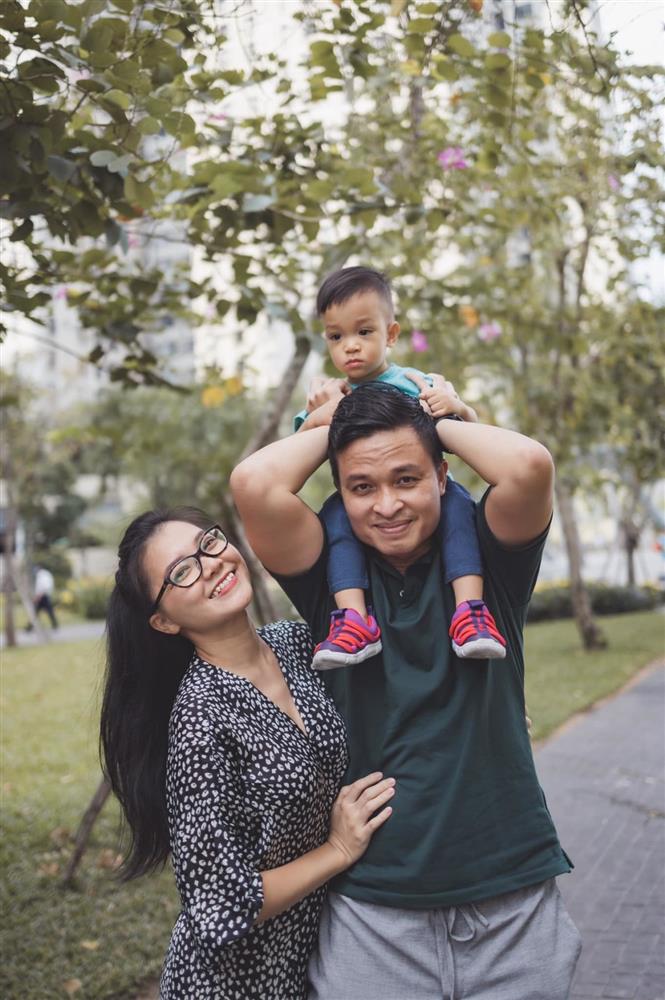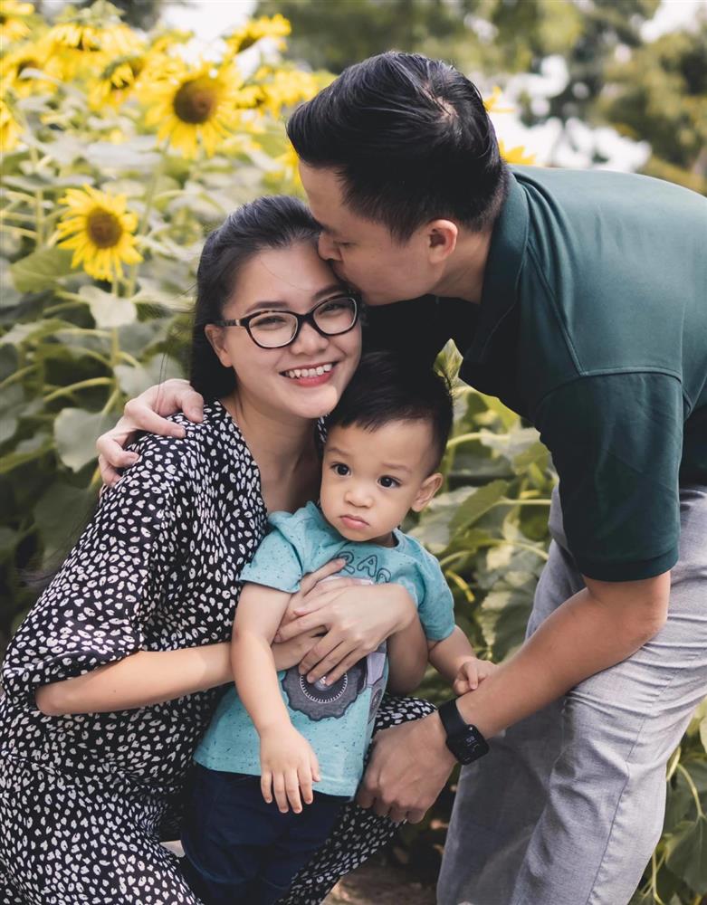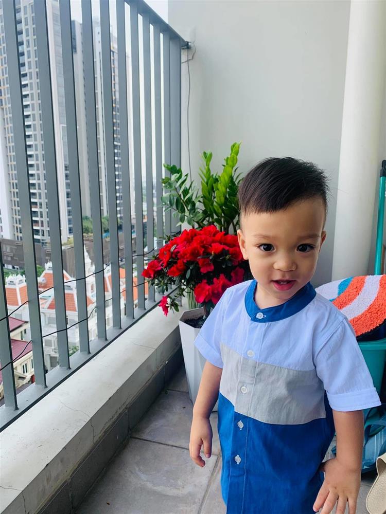 Bé Ủn có nét giống cả bố và mẹ. Nhóc tỳ rất tình cảm, đáng yêu. 'Không gì có thể diễn tả được niềm hạnh phúc của ba mẹ khi nhìn con khôn lớn mỗi ngày. Ba mẹ yêu con rất nhiều', Thanh Ngọc nhắn nhủ con trai.