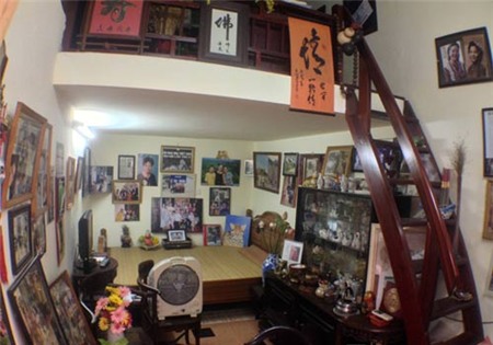 | Căn nhà nhỏ của nghệ sĩ Lê Mai được chia làm 2 phần với tầng 1 vừa là phòng ngủ, vừa là nơi bà tiếp khách. Phía trên là một gác xép nhỏ để bà cất các vật dụng. |