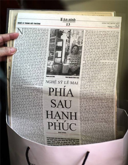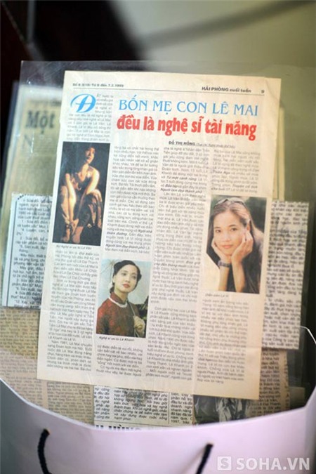 | Nghệ sĩ Lê Mai lưu giữ rất cẩn thận những bài báo viết về bà, viết về ba cô con gái Vy - Vân - Khanh và cả những bài báo về người cha quá cố Lê Đại Thanh của bà. |
