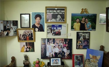 | Chính giữa phòng là bức ảnh cố nhà văn Lê Đại Thanh - cụ thân sinh ra nghệ sĩ Lê Mai. Xung quanh là những bức ảnh chụp đầy đủ các thành viên của đại gia đình nghệ sĩ Lê Mai. |
