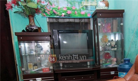 Chiếc tủ để TV là thành quả mấy tháng trời anh trai Quang Anh dành dụm tiền lương ít ỏi của diễn viên chèo mua về.