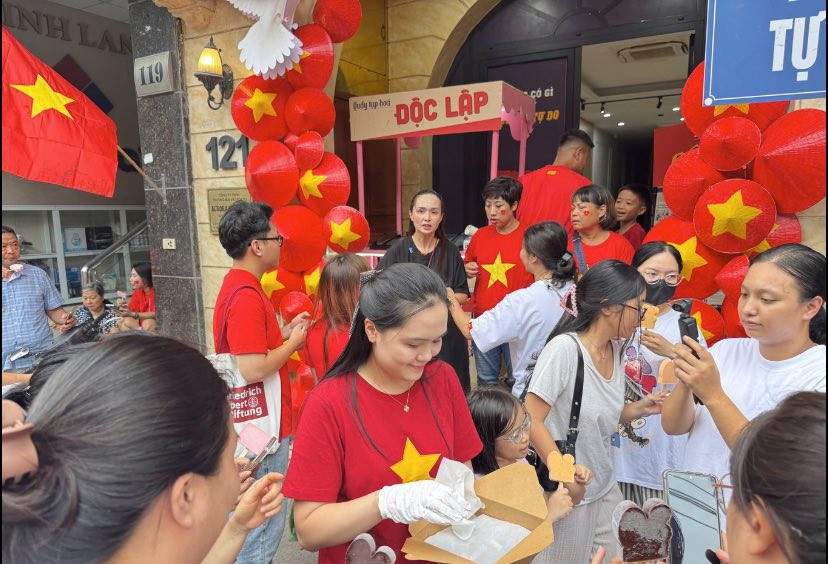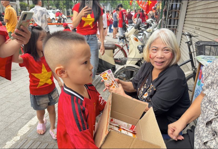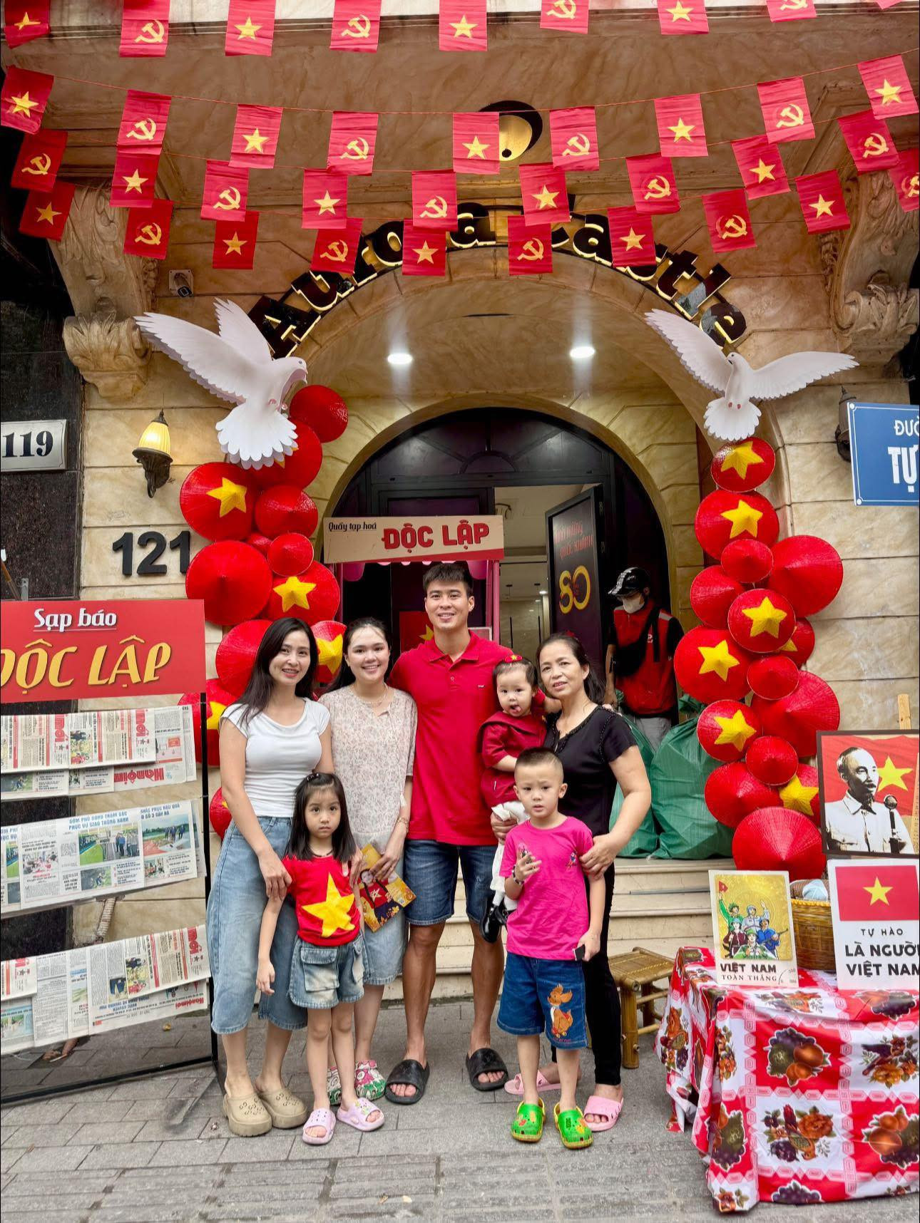 Vợ chồng Đỗ Duy Mạnh tặng quà cho người dân đi xem tổng hợp luyện diễu binh 2/9Đặc biệt, không gian trang trí để chào mừng ngày Quốc khánh 2/9 của vợ chồng Đỗ Duy Mạnh nhận được nhiều lời khen ngợi.