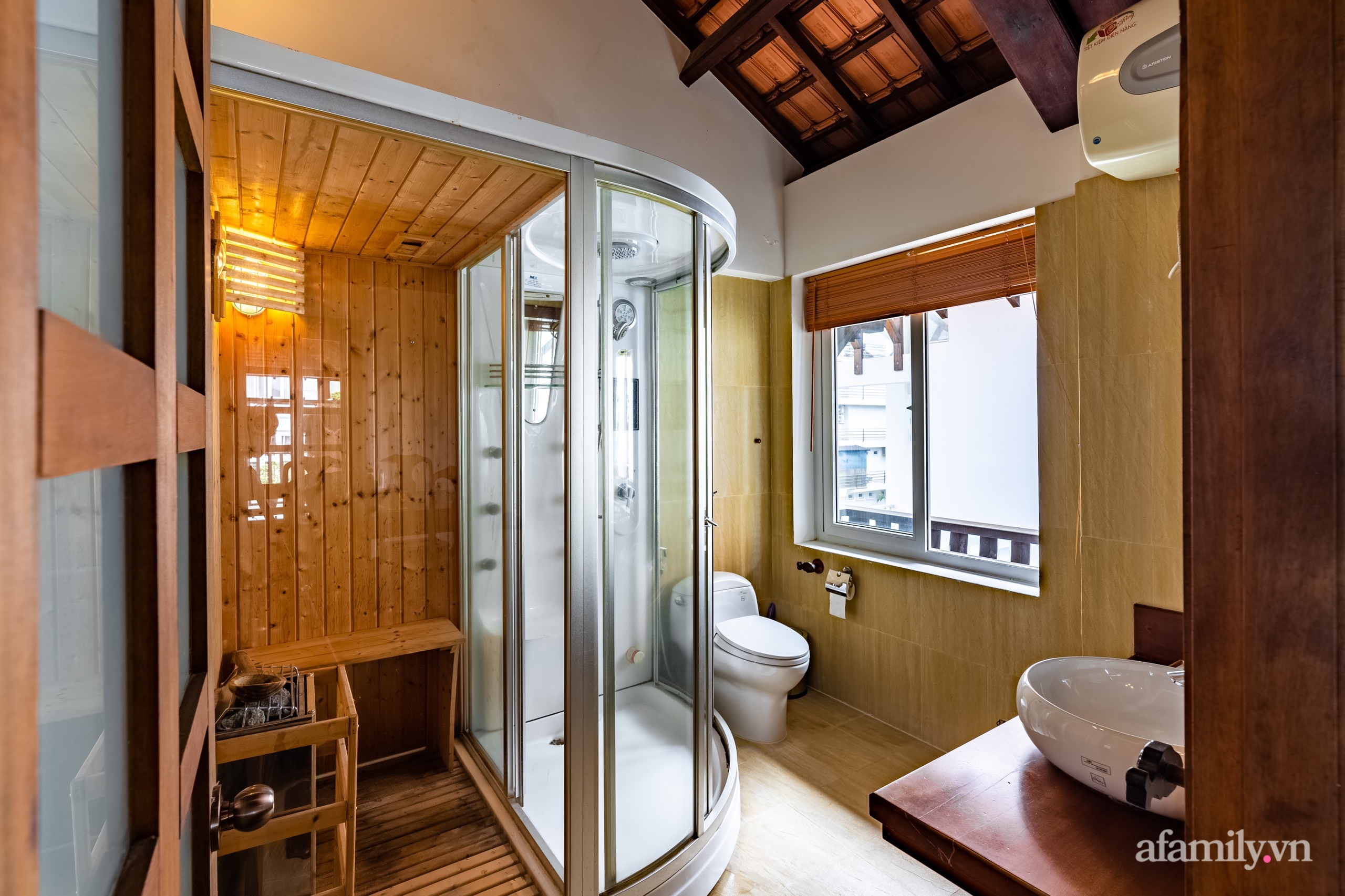 Căn nhà ngói được xây 3 tầng. Tầng 1 bao gồm phòng khách, phòng bếp và phòng ăn. Tầng 2 là mặt sàn dành cho 4 phòng ngủ. Tầng 3 là một phòng ngủ, ban công và phòng giải trí.