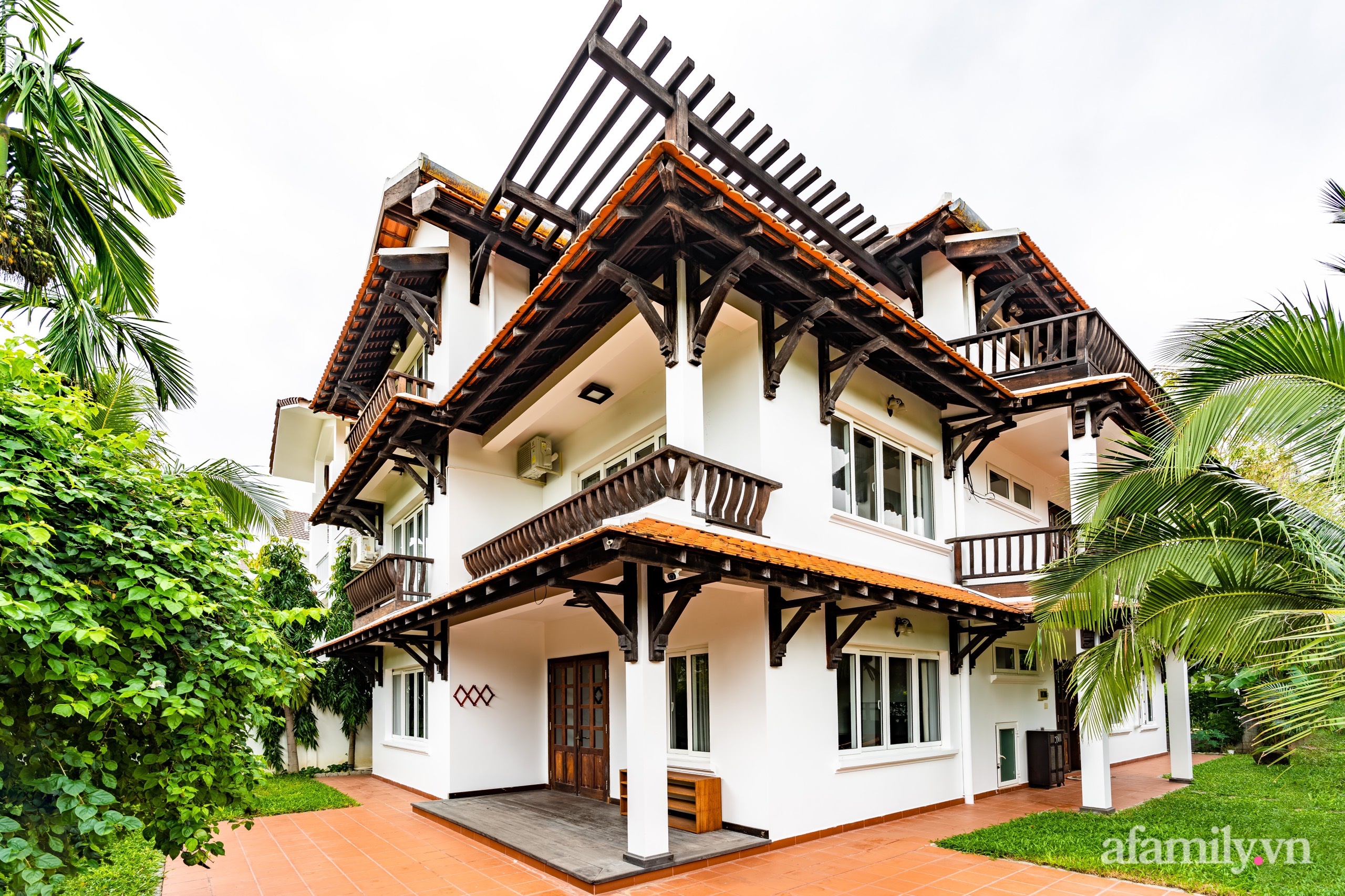 Không gian căn nhà ngói đỏ 3 tầng khi nhìn từ bên ngoài.