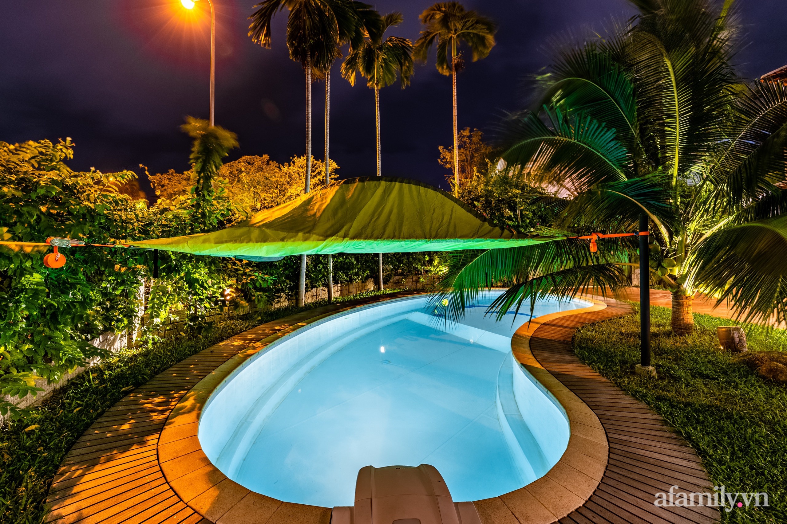 Bể bơi đặt phía trước nhà.
