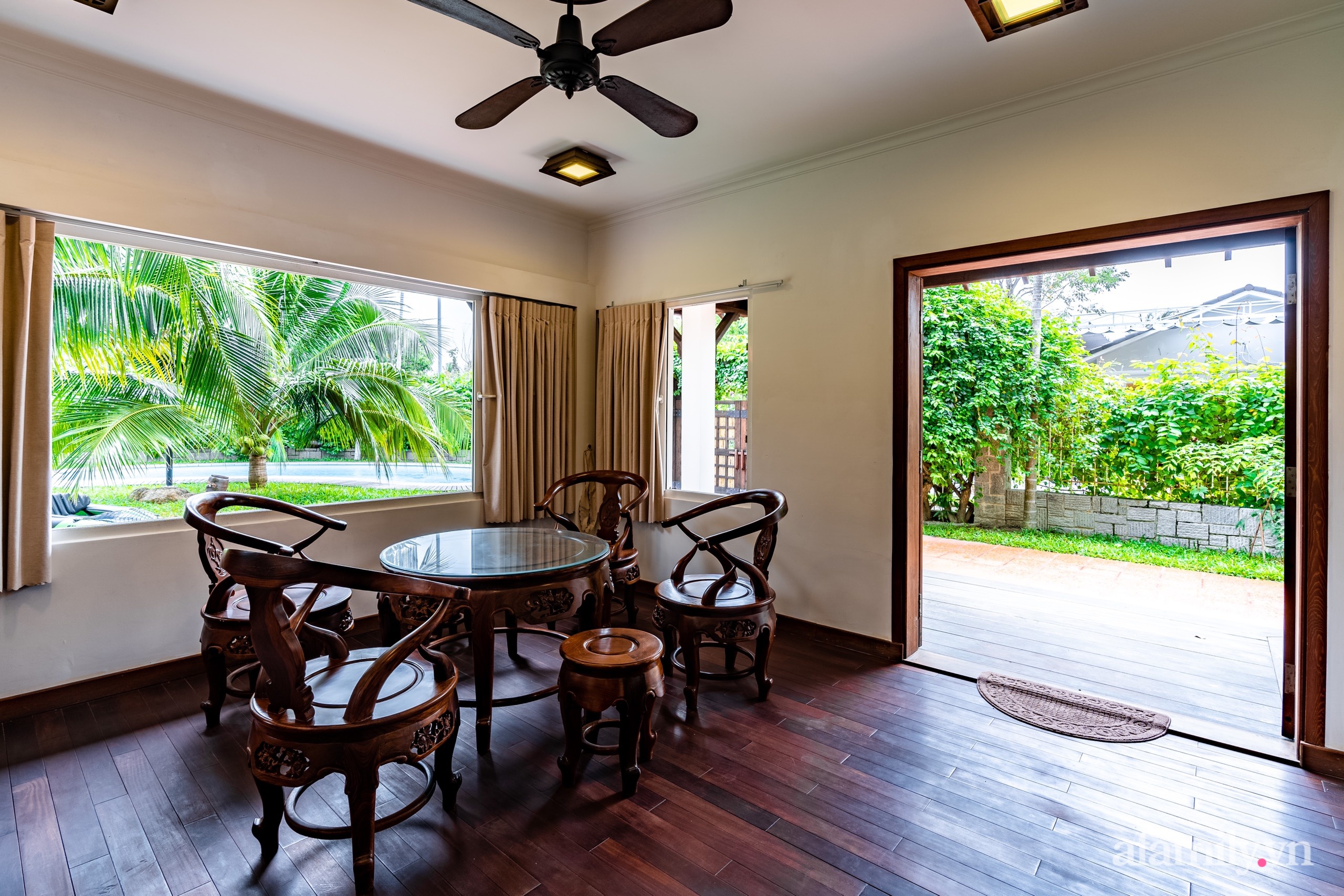 Cũng nhờ lựa chọn loại gỗ này, ngôi nhà dù đã xây được 10 năm nhưng mọi đồ nội thất bên trong vẫn bền vững. Đặc biệt là sàn gỗ ngày càng bóng lên rất đẹp.