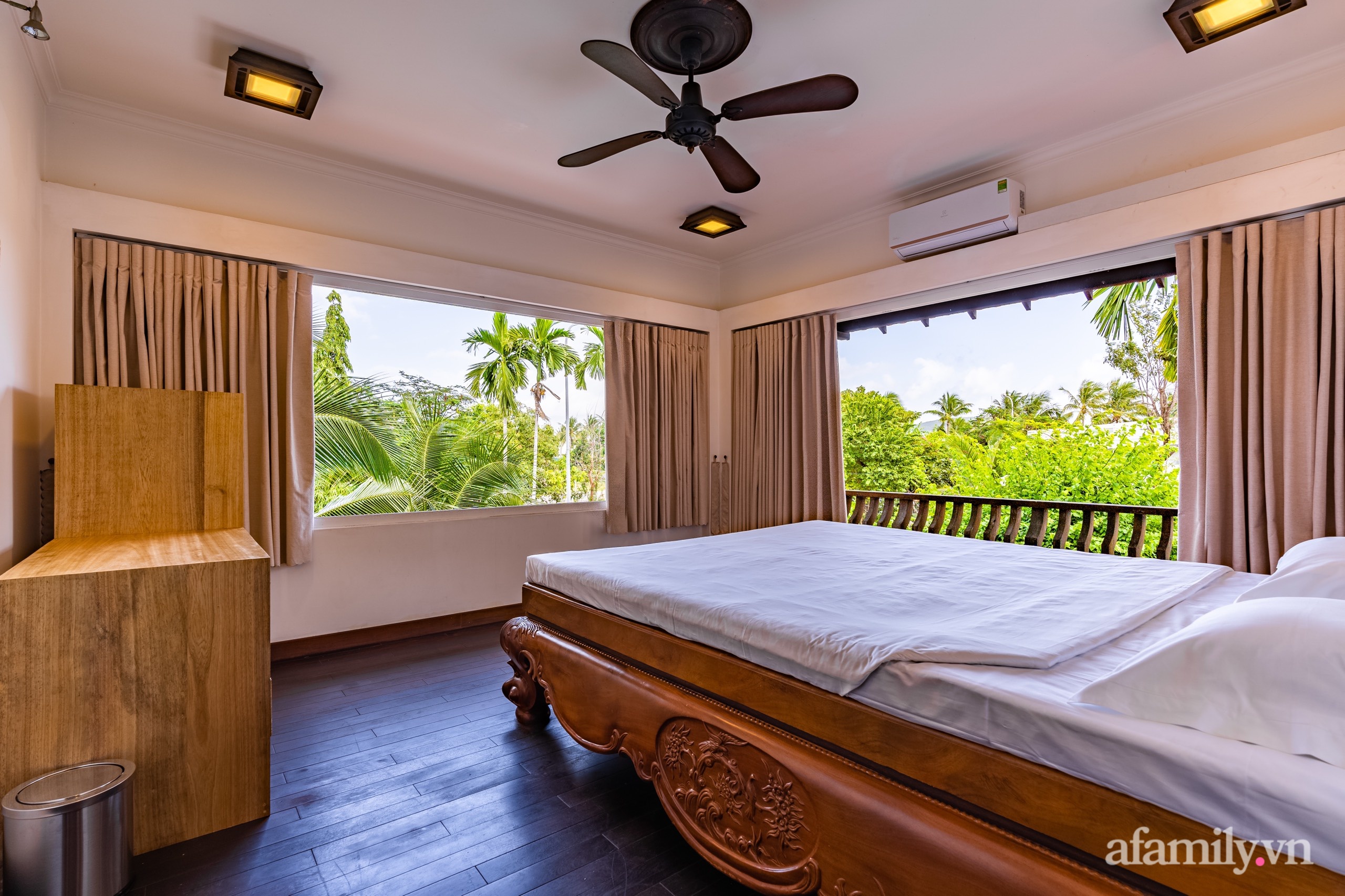 Căn nhà vườn được bố mẹ chồng chị Hoài Anh dành rất nhiều tâm huyết, công sức và thời gian để xây dựng. Không gian sống gần biển Nha Trang, rợp bóng cây xanh quanh vườn. Mỗi góc nhỏ đều thư thái, an yên khiến mọi người có dịp đến đây mải mê ngắm nhìn.