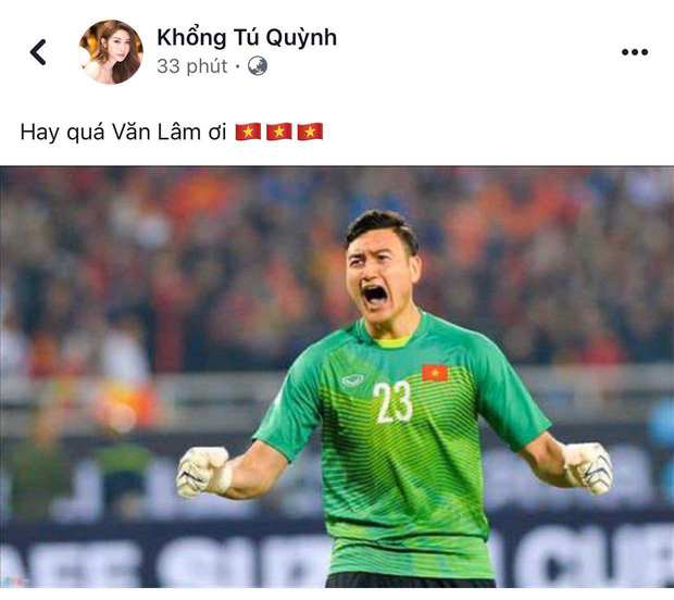 Hòa chung không khí với người hâm mộ, dàn sao Việt cũng đang rất phấn khích và dành nhiều ngôn từ không thể hay hơn dành cho chàng thủ môn đội tuyển nước nhà. Trận đấu đang dần đi đến những phút cuối đầy kịch tính với tỷ số hiện tại là 0-0.