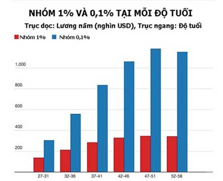 đồ cũng cho thấy lương của người thuộc nhóm 0,1% siêu giàu khá "lẹt