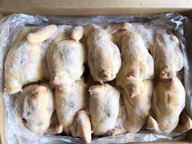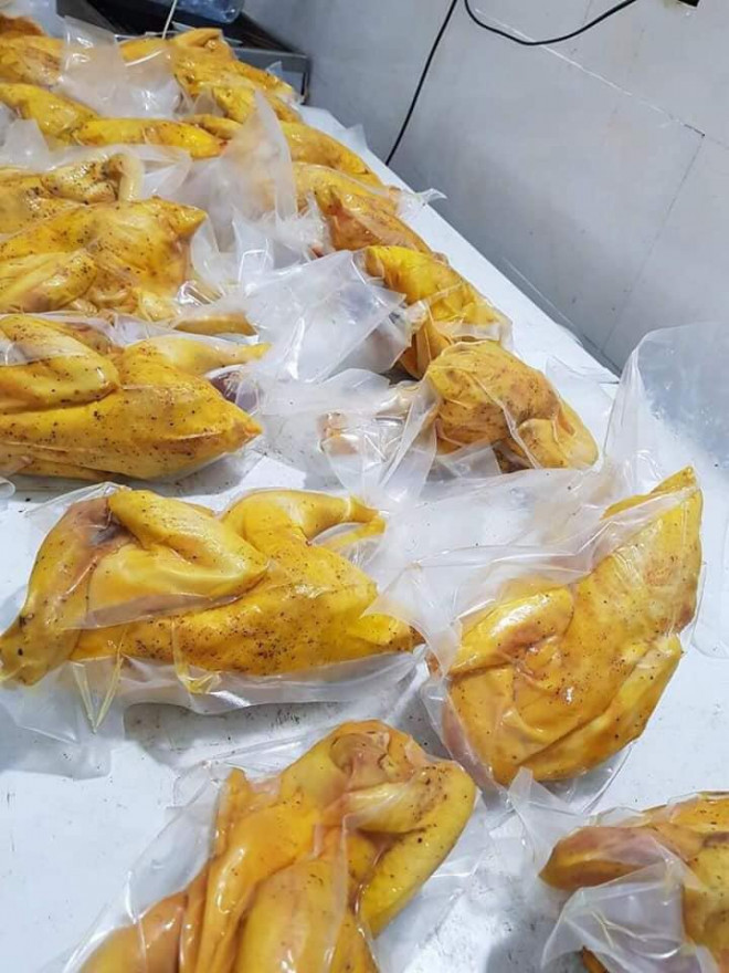 Những túi gà thành phẩm không hề có nhãn mác được rao bán trên các trang mạng xã hội.