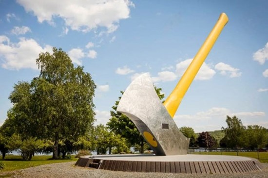Sở hữu chiều cao 15 m cùng lưỡi dài 7 m, cây rìu khổng lồ ở thị trấn Nackawic (Canada) tượng trưng cho tầm quan trọng của ngành lâm nghiệp trong khu vực.