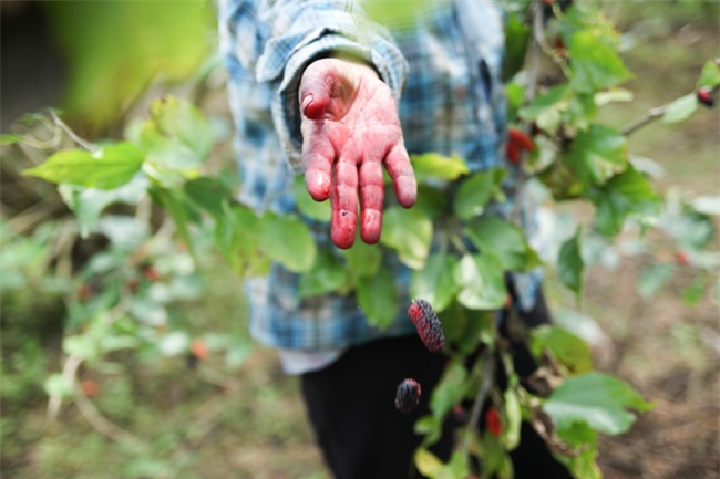 Bàn tay người bứt dâu luôn bị "nhuộm màu" nước dâu chín.