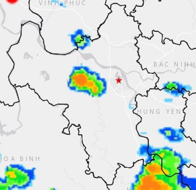 Theo Trung tâm dự báo khí tượng thủy văn quốc gia, qua theo dõi trên ảnh vệ tinh và ảnh ra đa thời tiết cho thấy vùng mây đối lưu đang phát triển trên khu vực Thạch Thất, Phúc Thọ, Quốc Oai, Hoài Đức.