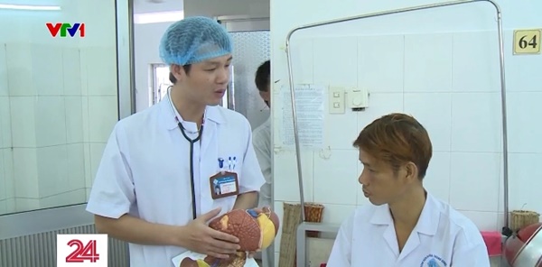 "Nếu mà bây giờ anh uống rượu thì bệnh gan càng ngày càng nặng hơn, có thể tiến triển tới ung thư gan" - bác sĩ tư vấn cho nam bệnh nhân.