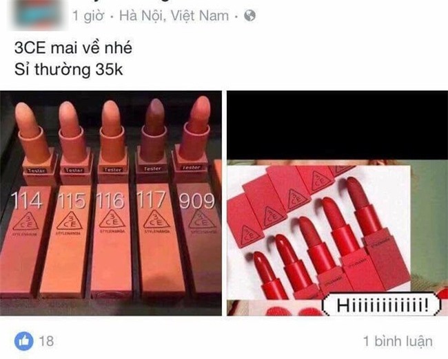Với mức giả chỉ vài chục ngàn rẻ đến giật mình như vậy, có trời mới biết được trong những cây son fake này có chứa những thành phần gì, độc hại đến như thế nào và có thể gây ra những tác hại khôn lường cho sức khỏe ra sao. Còn nhớ hồi năm 2015, khi tiến hành phân tích những lô hàng mỹ phẩm giả, Sở Cảnh sát London đã phát hiện ra những chất kịch độc gây ung thư như thạch tín, thủy ngân, chì và cả phân chuột. Những cây son 3CE fake này nhiều khả năng là cũng chẳng khá khẩm hơn như vậy là mấy. Ấy vậy mà trên Facebook, không ít người vẫn vô tư hỏi mua mà không lăn tăn một chút nào.