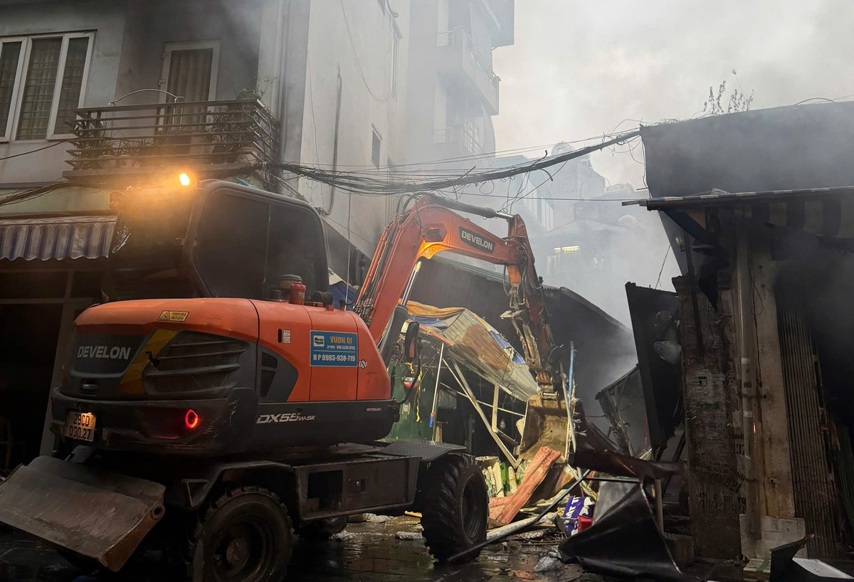 Đến hơn 7h cùng ngày, đám cháy cơ bản được khống chế, tuy nhiên bên trong chợ vẫn còn nhiều khói. Máy xúc được huy động phá dỡ khu vực giữa chợ để phục vụ công tác chữa cháy.
