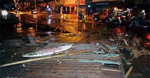 vỡ trên sàn. Trận động đất 8,3 độ Richter gây ra sóng cao gần 5 m tràn