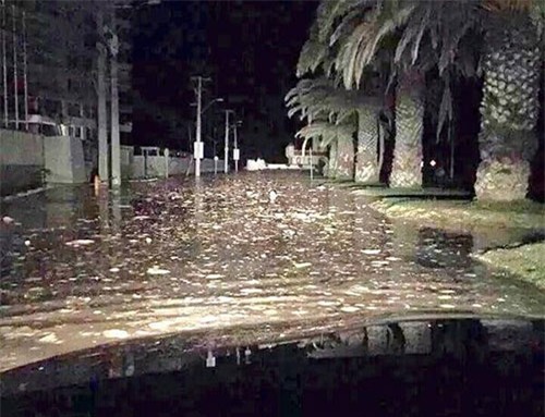 khi đó, mực nước dâng cao ở thành phố Coquimo. Toàn bộ vùng biển Chile