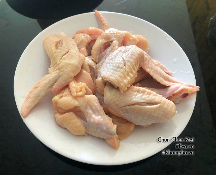 - Cánh gà rửa sạch, dùng muối chà xung quanh sau đó rửa lại bằng nước cho sạch. Chặt miếng vừa ăn hoặc để nguyên tuỳ bạn, dùng dao khía nhẹ vài đường xung quanh để khi ướp được thấm gia vị hơn.