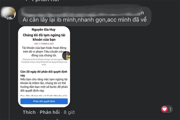 Đáng chú ý, sau khi vụ việc này xảy ra, trên Facebook xuất hiện không ít các bài đăng quảng cáo liên quan đến dịch vụ lấy lại tài khoản Facebook.