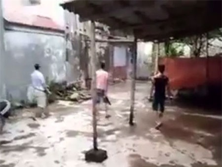 Hai thanh niên đuổi theo, tay cầm chày đánh liên tục vào chú chó tội nghiệp. Những tiếng kêu tuyệt vọng vang lên. "Chưa chết, đánh trúng vào đầu nó ấy", những thanh niên đứng ngoài hô hào trợ giúp.