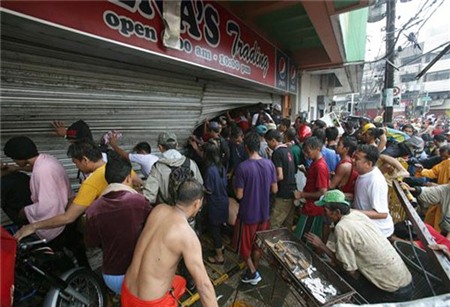 Hàng trăm người phá cửa của một siêu thị để hôi của tại thành phố Tacloban, tỉnh Leyte hôm 9/11. Ảnh: slate.com.