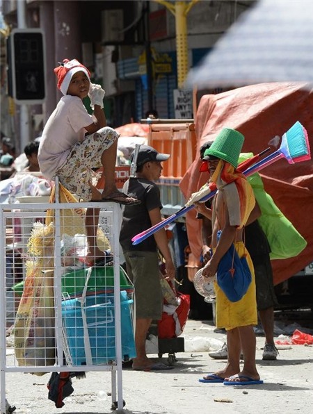 | Một người đàn ông dùng xe đạp để chở những thứ mà anh ta cướp tại một cửa hàng ở Tacloban hôm 10/11. Ảnh: |