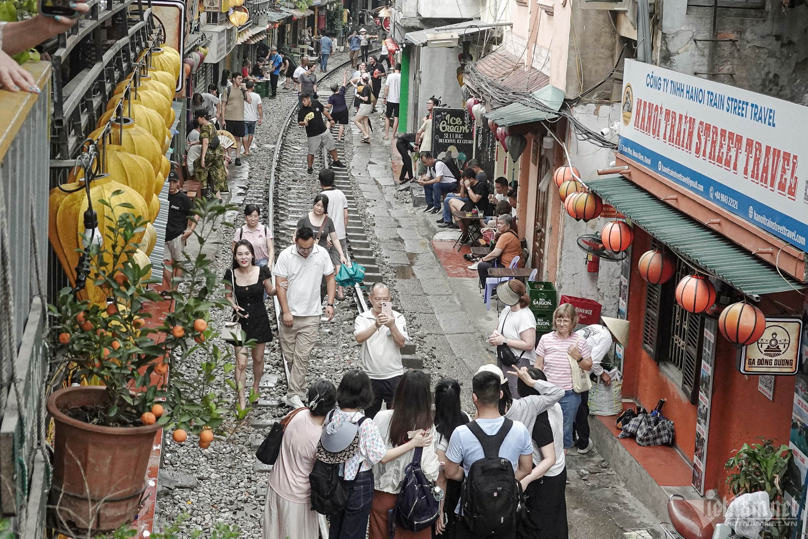Du khách sẵn sàng chờ 1-2 tiếng để có thể ngắm, ghi lại hình ảnh đoàn tàu chạy qua khu phố