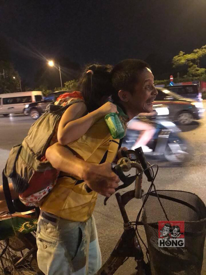 "Hôm nay lại gặp bác này, bác ta vừa có tật mà thần kinh có vấn đề nhưng lúc nào cũng địu con gái trên lưng đi nhặt rác ở phố Nguyễn Văn Cư. Nhìn bác vất vả mà nể dã man", facebook T.H chia sẻ bài viết sau khi bắt gặp cảnh tượng một người đàn ông cõng bé gái trên lưng trong hành trình mưu sinh.
