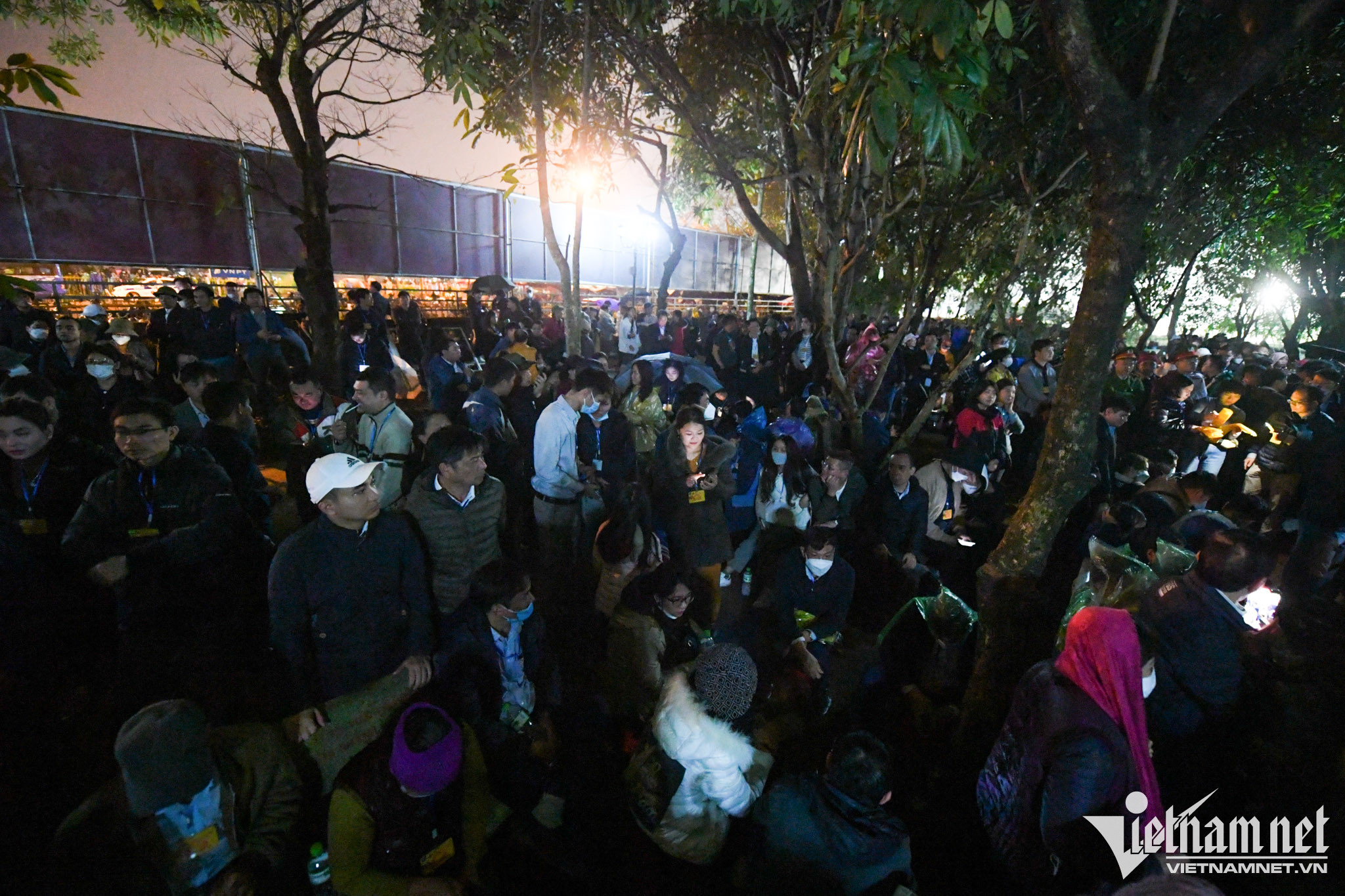 Mặc dù, 5h mới tổ chức phát ấn, hàng trăm người vẫn đứng xếp hàng chờ đợi thâu đêm ngay tại sân đền.