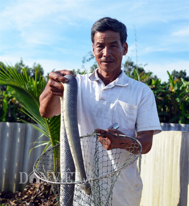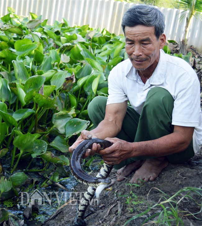“Khi đã chuẩn bị mọi thứ xong, tôi bắt đầu mua giống về thả nuôi, gồm rắn ri cá và ri tượng. Tôi chọn mua giống rất kỹ, tuyệt đối không thả nuôi những con rắn bị mắc câu hoặc bắt bằng xung điện, vì như vậy thì rắn không lớn hoặc dễ bị chết. Đặc tính của rắn là đẻ vào mùa nước (từ khoảng tháng 5-9 âm lịch), khoảng thời gian này mình phải quan sát kỹ đàn rắn và tạo nơi cho rắn con trú ngụ” - ông Lực bộc bạch.